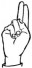 На ћирилици написано ВОЈИСЛАВ ОКОШАНОВИЋ састоји се из 18 слова [?]. Исписано ћириличном једноручном азбуком за глувонеме: